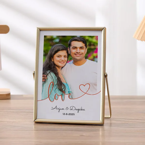 Celebrate your special moments with the Lovely Memories Personalized Golden Photo Frame For Couples, a timeless keepsake that adds elegance to your cherished memories. This personalized golden frame makes an ideal gift for anniversaries, weddings, or romantic celebrations. Order your Lovely Memories Personalized Golden Photo Frame For Couples today on gift and surprise your partner with a beautiful memory holder.