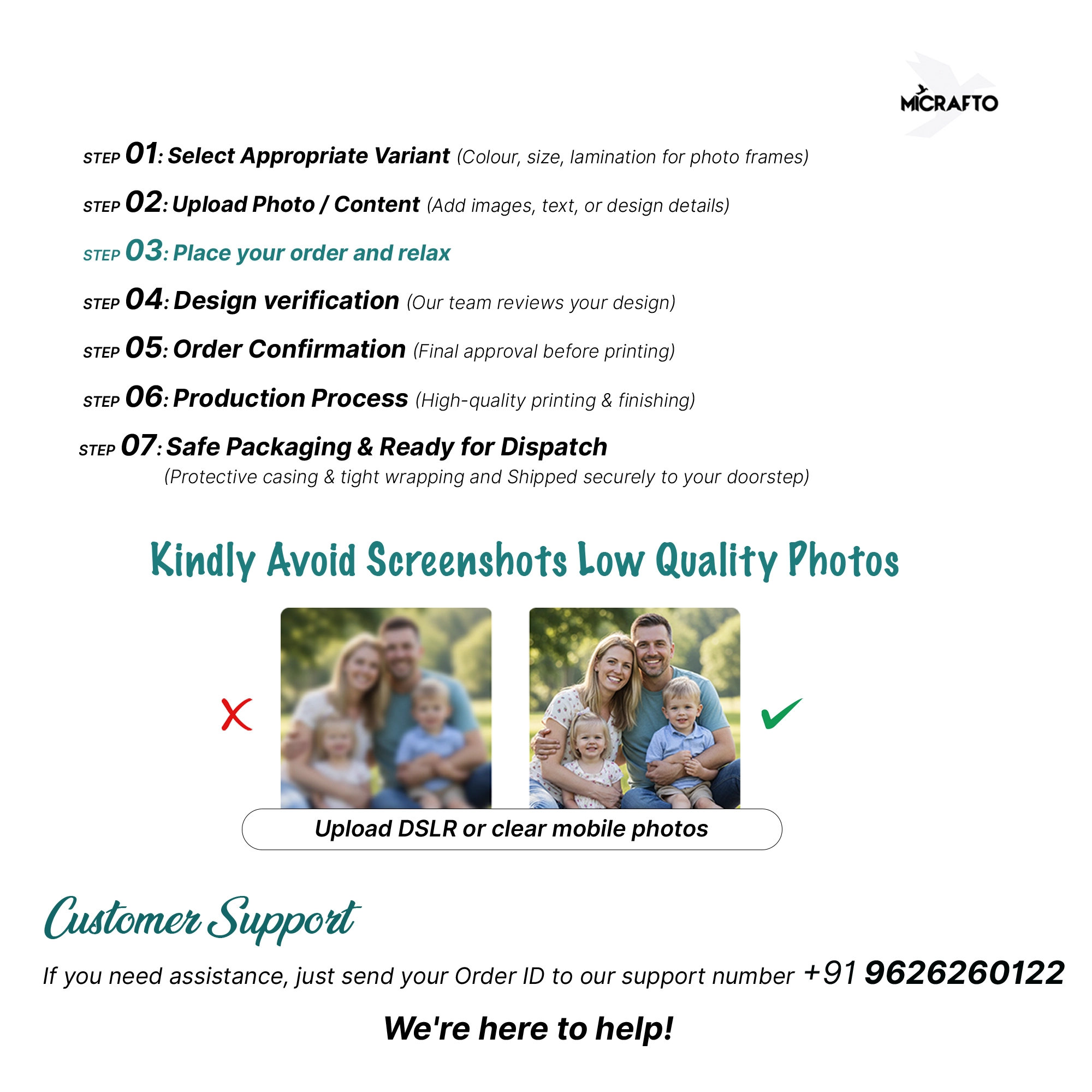 - No Returns: Customized frames and personalized products cannot be returned once ordered.