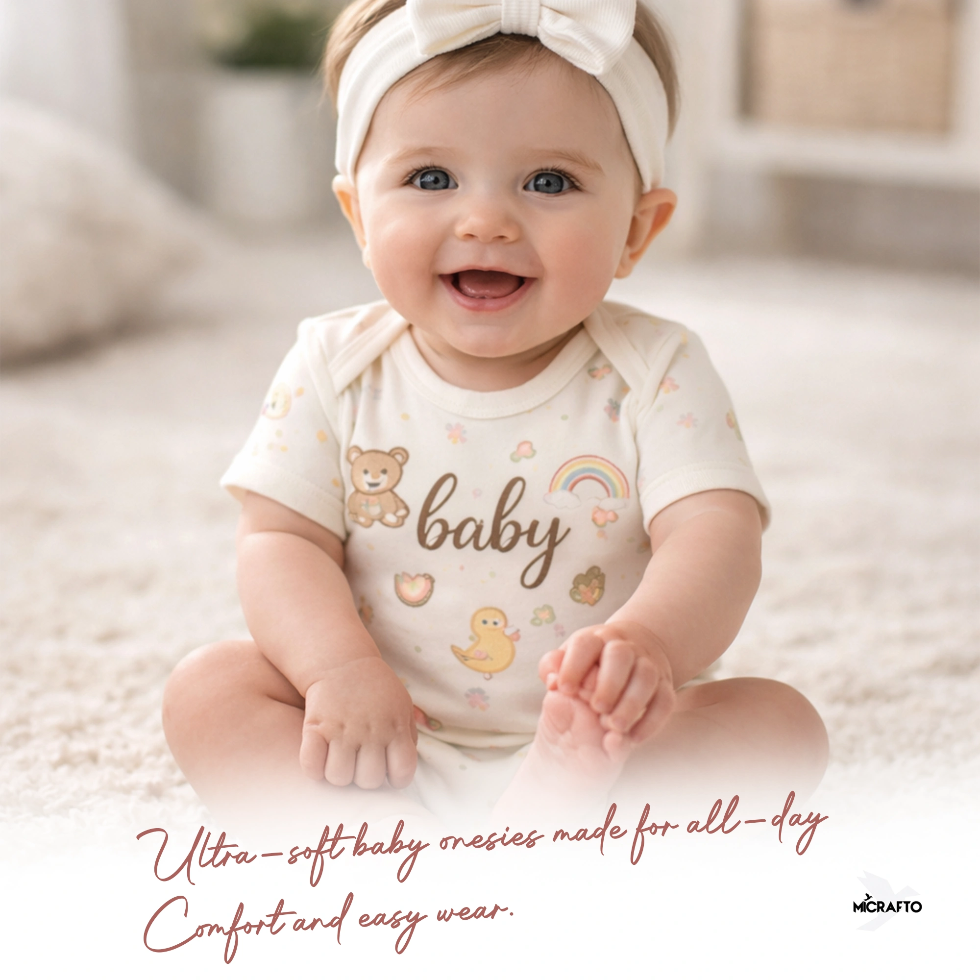 Our Onesie for Babies is designed to keep your little one comfortable, happy, and safe all day long. Made with soft, breathable fabric, this Onesie for Babies is gentle on delicate skin and perfect for everyday wear, playtime, and nap time. Carefully crafted with easy snap buttons and durable stitching, MICRAFTO ensures premium quality and long-lasting comfort for your baby.